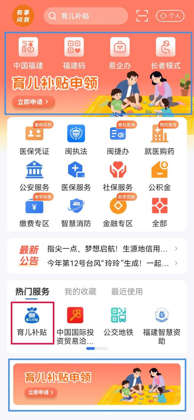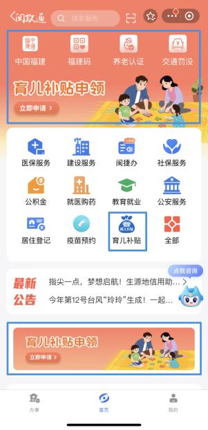 福建的朋友们注意啦!闽政通“育儿补贴”申领入口已经正式上线啦!
