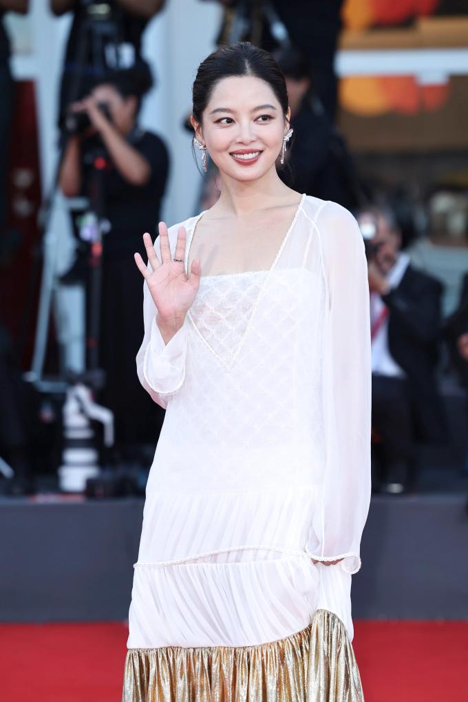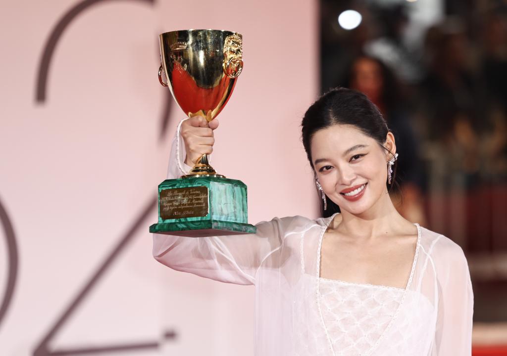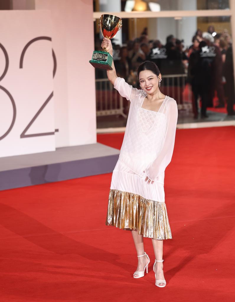 9月6日,在意大利威尼斯,辛芷蕾荣获第82届威尼斯电影节最佳女演员奖。新华社记者 李京 摄