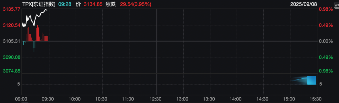 与此同时,日本东证指数突破8月18日高点,升至历史高点3135.77点,日内涨幅超0.9%。