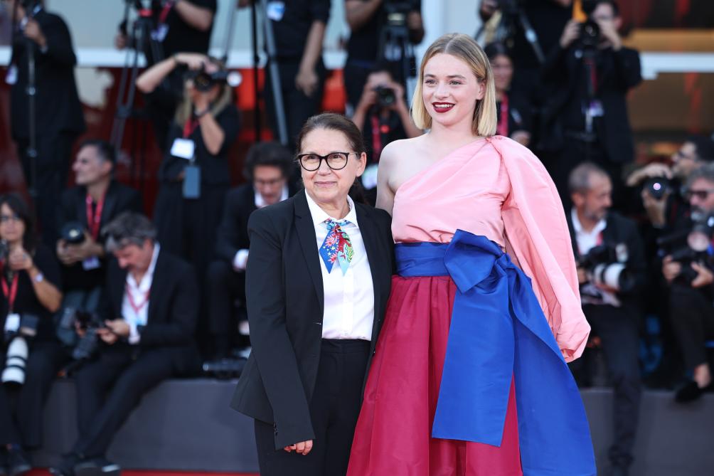 9月6日,在意大利威尼斯,电影《寂静的朋友》导演伊尔迪科·埃涅迪(左)和演员卢娜·韦德勒出席闭幕式。新华社记者 李京 摄