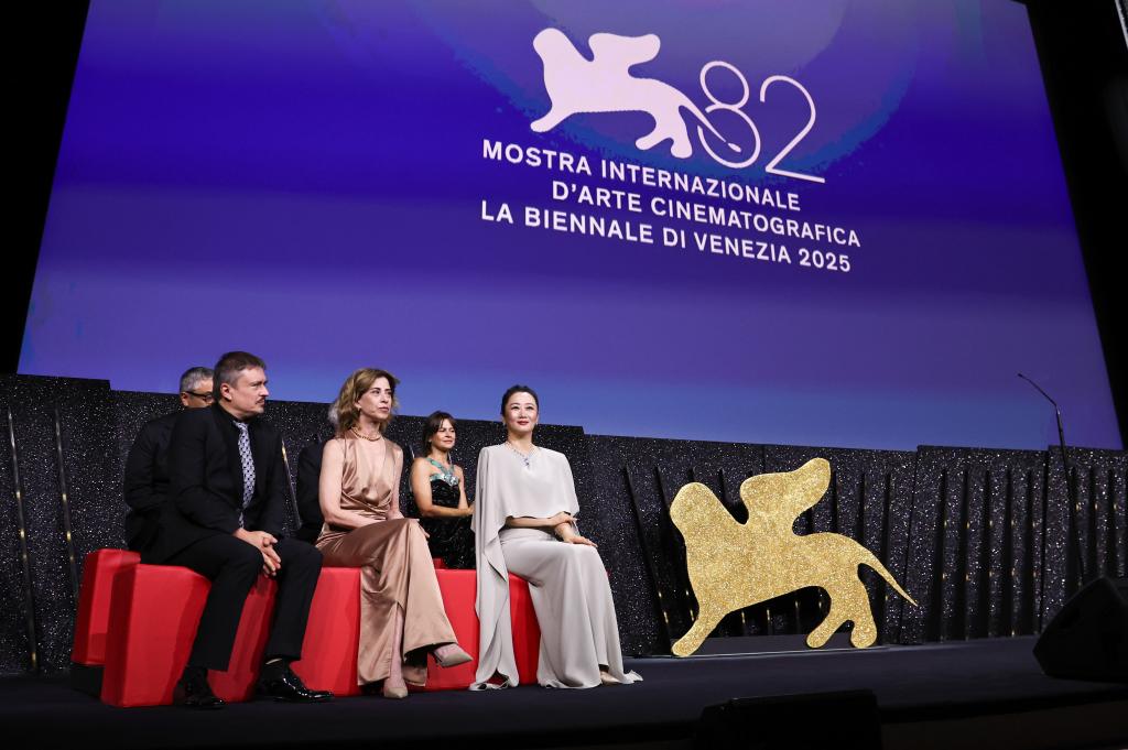9月6日,在意大利威尼斯,主竞赛单元评委出席闭幕式。新华社记者 李京 摄
