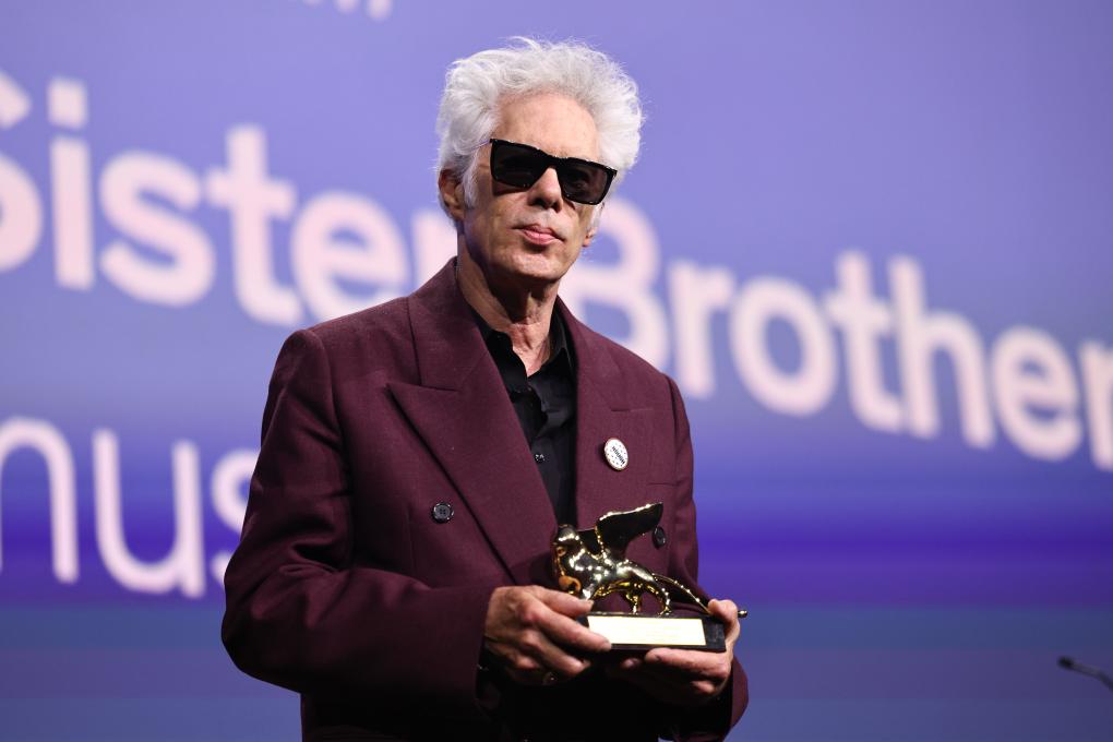 9月6日,在意大利威尼斯,最佳影片金狮奖《父母姐弟》的导演吉姆·雅穆施与奖杯合影。新华社记者 李京 摄