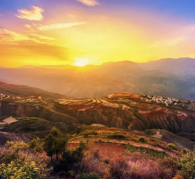 “朝霞不出门,晚霞行千里”,日出前后出现鲜红的朝霞,说明大气中的水汽已经很多,而且云层已经从西方开始侵入本地区,这是天气将要转雨的征兆;而在东边出现大红色金黄色的晚霞,说明西边的上游地区天气已经转晴或云层已经裂开,阳光才能从西方透过来造成晚霞,预示笼罩在本地上空的雨云即将东移或者消散。