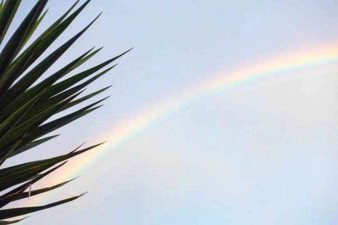 为什么彩虹是弯的?彩虹之所以是弯曲的拱形,是因为彩虹的光线总是以与太阳光路径约42°的角度达到观察者,所以我们看到一个42°的彩色半圆穿过天空,这就是我们所看到的彩虹的弧形。