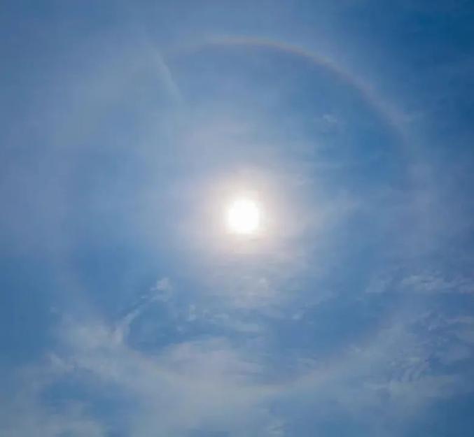 “日晕三更雨,月晕午时风”,这里面有一定科学道理。日晕是一种光学现象,日光透过云层时会发生折射,尤其是遇到冰晶,经过两次折射就形成了光晕。高云里出现冰晶,一般是天气降温、雷雨天气将到的预兆。