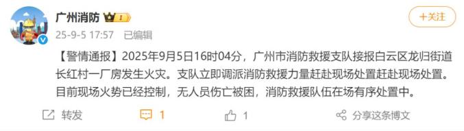 广州白云区一厂房突发火灾,消防安全不容忽视