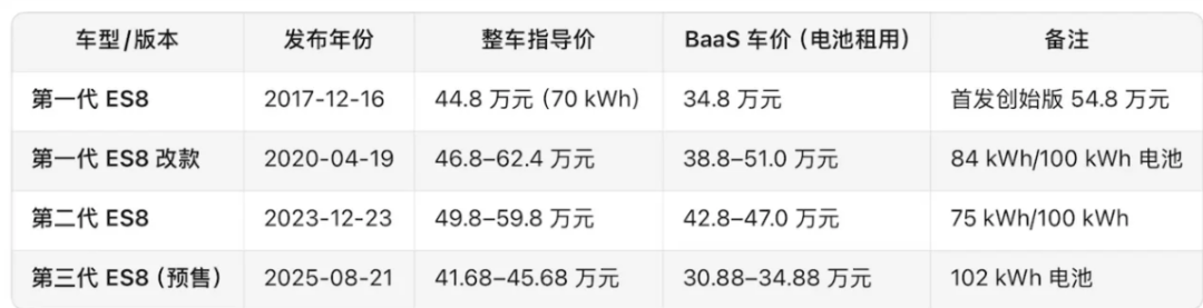 笔者上周与李斌交流,他解释称:“全新ES8是锚点车型。第一代ES8销售额和毛利最好,二代ES8成本过高。现在全新ES8重新成为锚点,未来产品定价和技术平台都会以此重新布局,这也是标配100度电池的原因之一。”但这一选择和理想、小鹏一样,是向市场环境妥协。