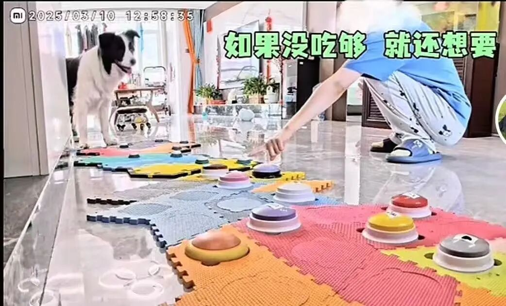 但要成为像“边牧停停”这样的顶流宠物网红,还得理解和使用更抽象的形容词。其他小狗按“吃零食”没回应,可能会重复按键或放弃,而“停子”会用“不开心”“委屈”“难受”等表达,引导主人满足自己的需求。