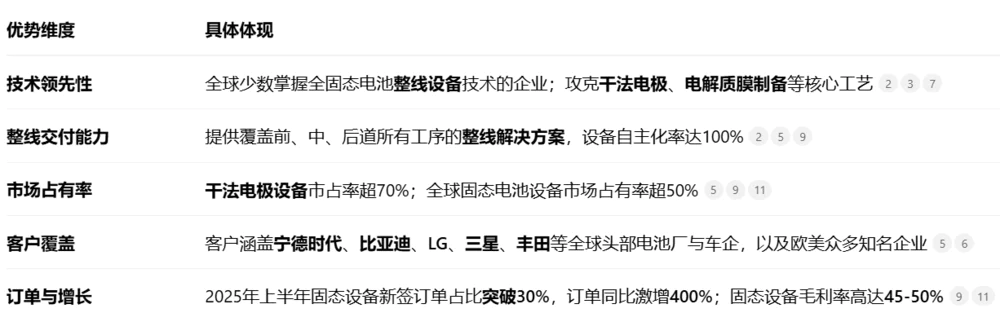 先导智能凭借其完全自主知识产权的固态电池整线设备技术,在全球固态电池设备领域建立了深厚的竞争优势。不仅在国内市场占据主导地位,还在海外市场实现了快速扩张。