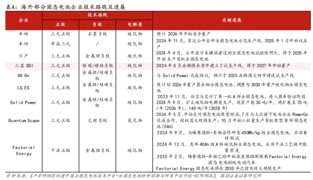 海外企业全固态电池预计量产时间在2026年后,日韩和欧美企业的研究布局较早,研发规模较大。