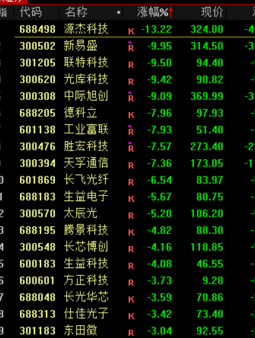 今日市场的关注点之一,是近期热门的CPO板块集体调整,拖累了创业板表现。被市场称为“易中天”的CPO三只股票中,新易盛、中际旭创跌超9%,天孚通信下跌7%。