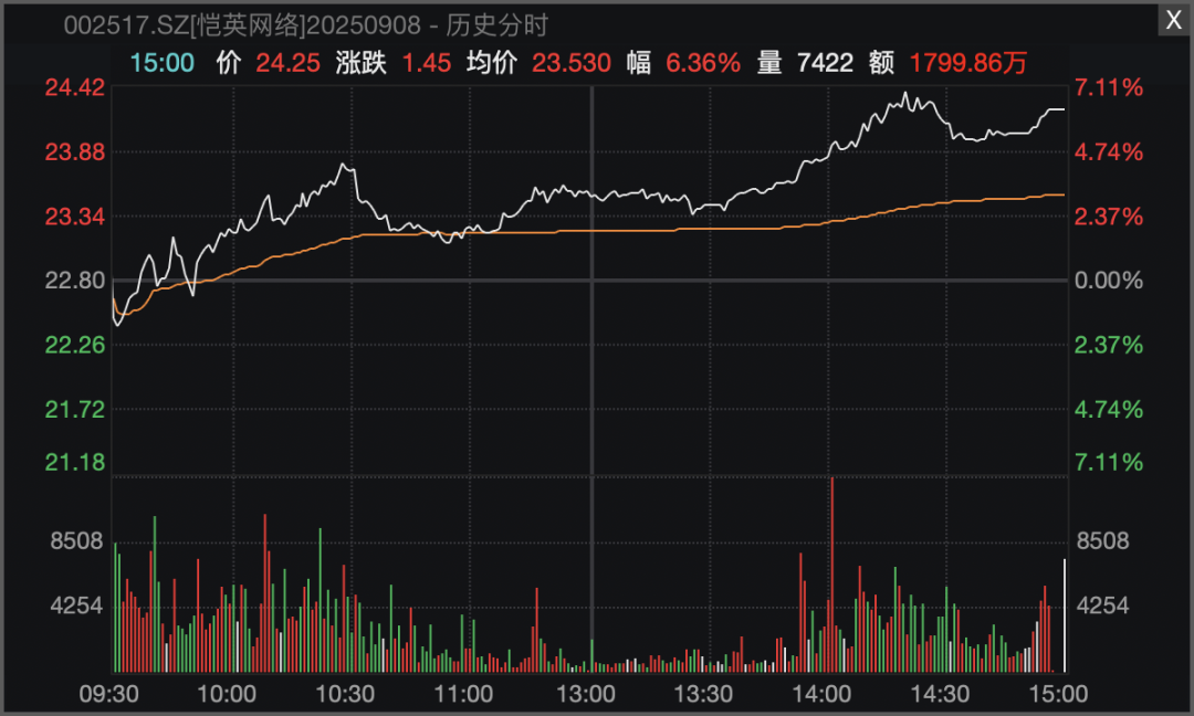 游戏股尾盘也出现异动,板块指数拉涨近4%,创2年多来新高。三七互娱(002555)高开高走,下午2点后直线涨停;恺英网络同样在尾盘拉升创历史新高,冰川网络、完美世界等午后全线走强。