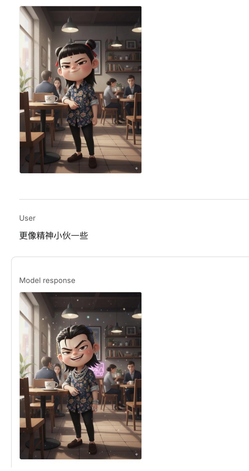 这两个目标的实现,需依托Gemini的世界知识理解多模态上下文。比如,Nano Banana要理解添加的玩具飞机和精神小伙的穿搭风格。