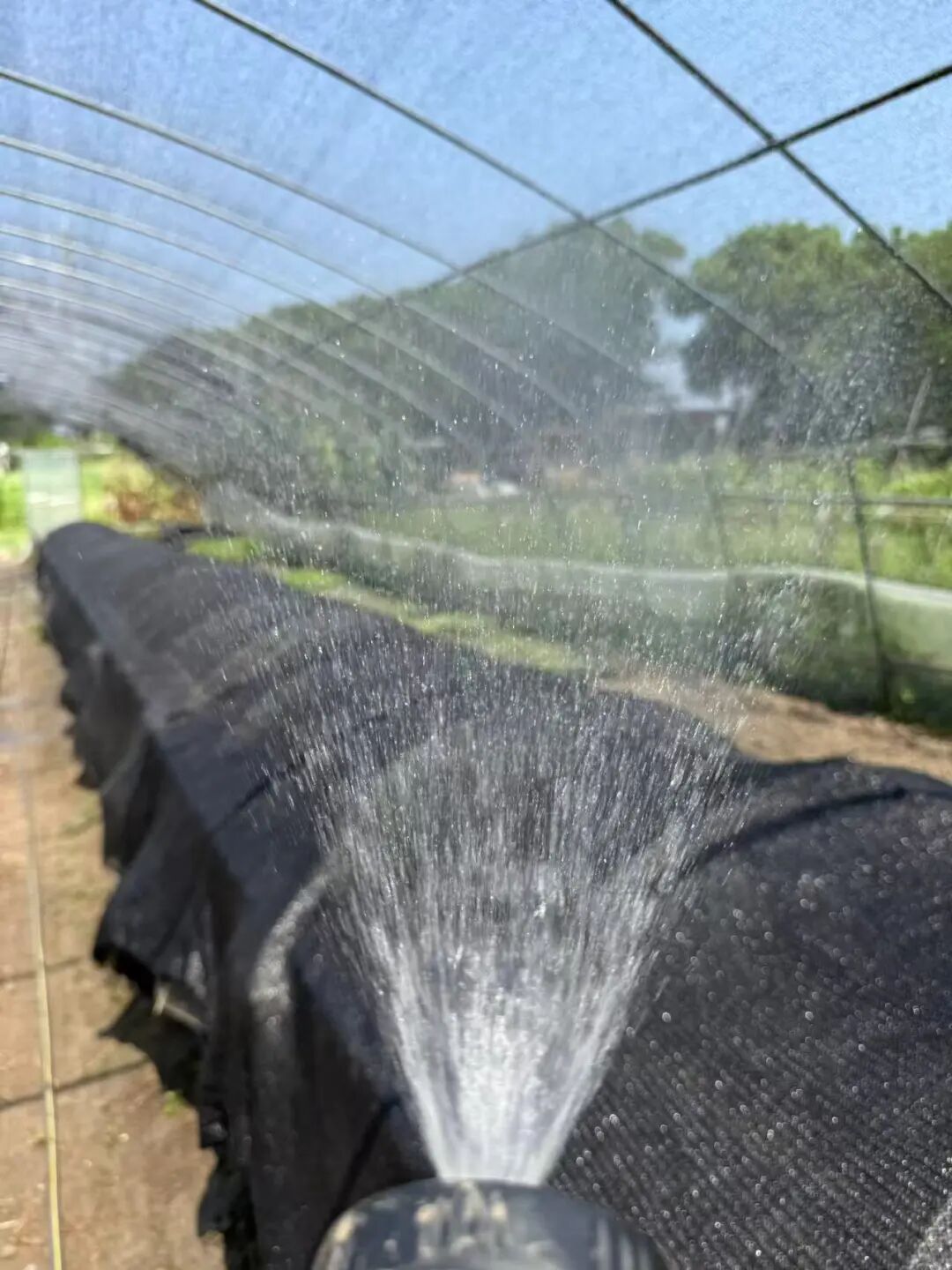 8月旱季,农场里正持续喷水降温。(图/受访者供图)
