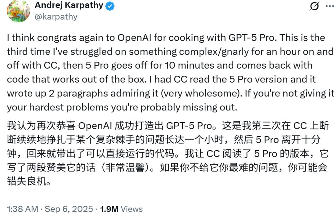 一方面,OpenAI GPT - 5系列模型强势崛起,在与Claude Code的较量中后来居上,AI大神Karpathy也现身推荐GPT - 5 Pro强大的代码能力。