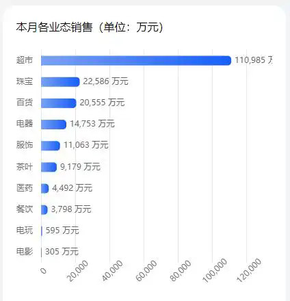 8月,胖东来超市业态销售额达11.10亿元,珠宝、百货、电器、服饰这四大业态单月销售额均超亿元,分别为2.26亿元、2.06亿元、1.48亿元和1.12亿元。五大业态合计贡献超过当月总销售额的90%。