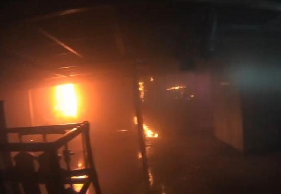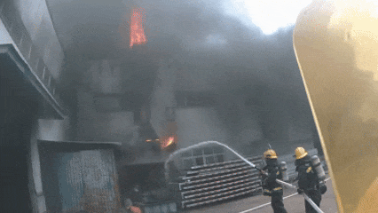 60秒左右,我们被合围。我和工友、安全员三人很快就身陷火海,泡沫、油漆残留物等燃烧释放出有害气体,严重影响我们的呼吸,滚滚浓烟阻挡视线,眼前只剩模糊的火光。
