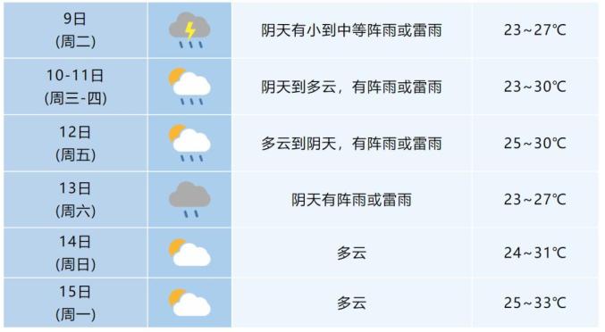 14日(周日):全省多云,大部分地区有雷阵雨。