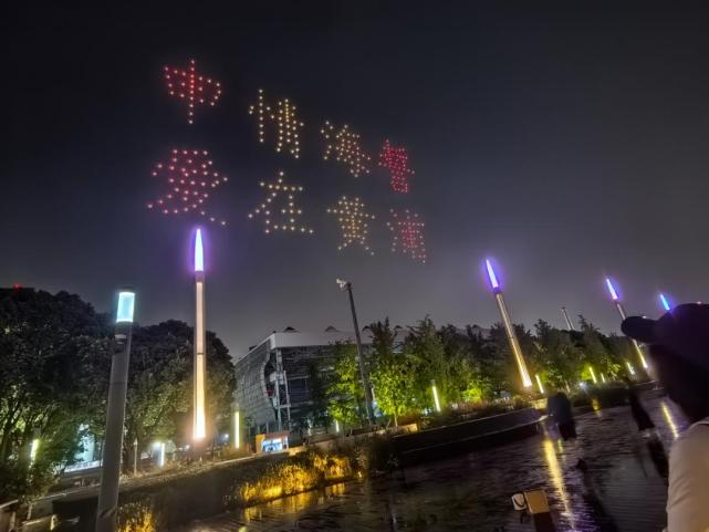 晚上八点,数百架无人机飞上天空,在黄浦江畔组成“申情海誓 爱在黄浦”“永远爱你”等字样和图案,把夜空装点得璀璨夺目。刚完成共创环节的参与者们纷纷拿出手机,记录下这浪漫的时刻。95后嘉宾小敏笑着说:“本想来交友,没想到被别人的爱情甜到了!”现场欢呼声和闪光灯不断,仿佛星光洒落在人间。