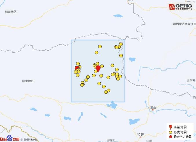 周边县城:震中距双湖县127公里、距尼玛县259公里,距那曲市480公里,距拉萨市574公里。