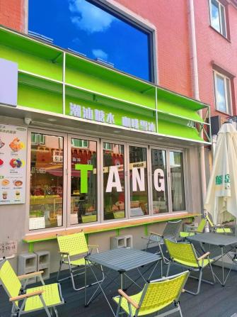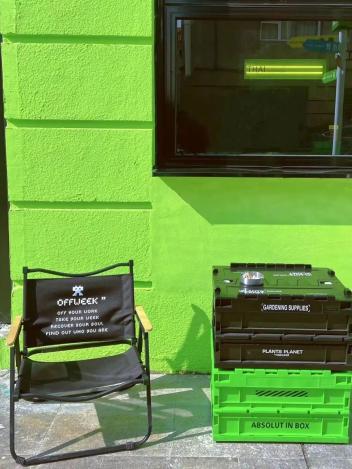 小镇还有多巴胺街区,克莱因蓝、芭比粉、荧光绿,每家商户的外摆区域都成了艺术现场,完美诠释了多巴胺街区的快乐生活。