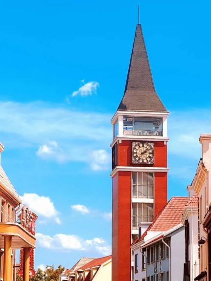 这里100%出片。除了标志性钟楼建筑,美兰湖小镇还增设了手绘墙、热气球美陈等打卡装置,随手一拍都是大片。