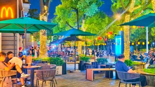 入夜,小镇灯光亮起,街区在氛围感装饰下更加热闹。走在街头,幸福感油然而生,让人感叹这里有着“悠闲、惬意、浓烈”的美好秋天!