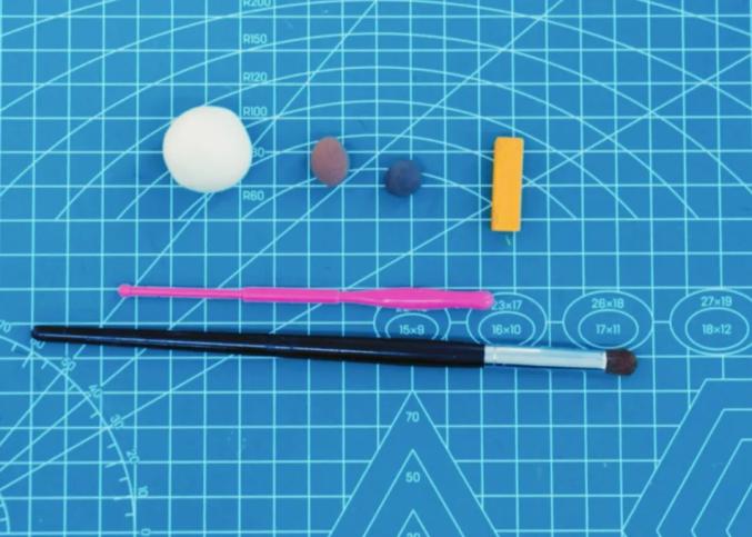 需要准备白色超轻粘土、棕色超轻粘土、褐色超轻粘土、黄色色粉、刷子以及粘土塑形工具。