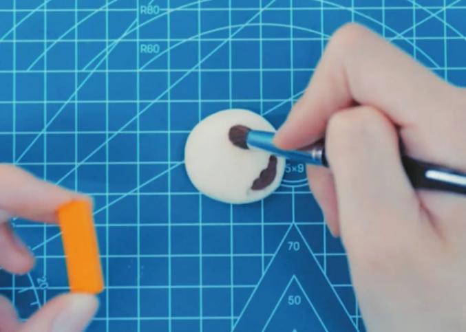 2. 把棕色超轻粘土填入刚才戳出的凹痕中,当作馅料。