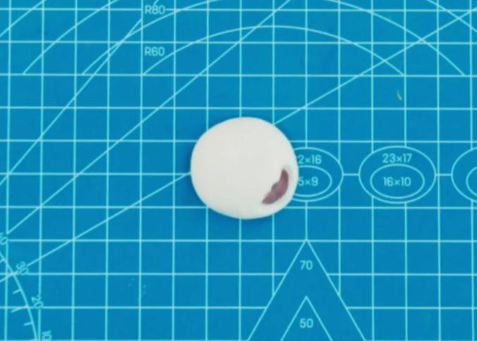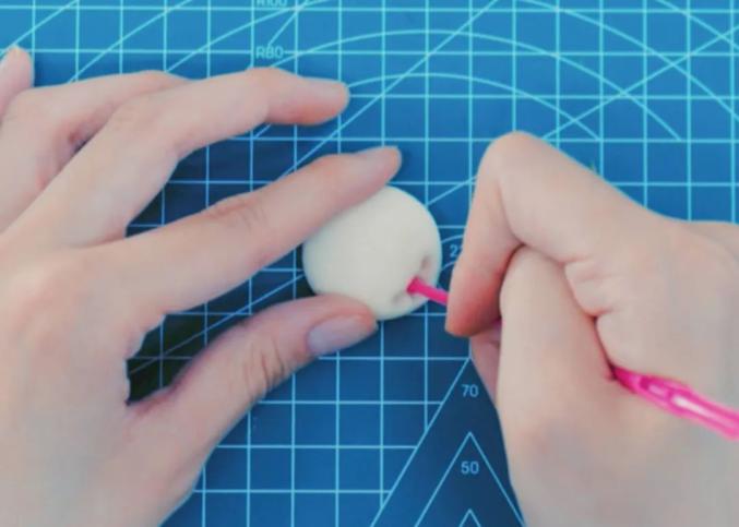 1. 先把白色超轻粘土搓成圆形,接着将其压扁,之后用粘土塑形工具在上面戳出凹痕。