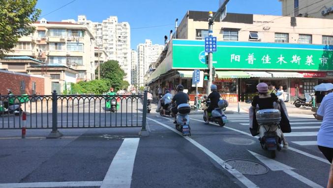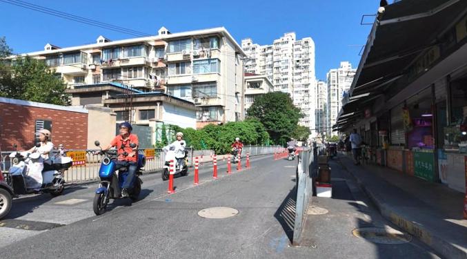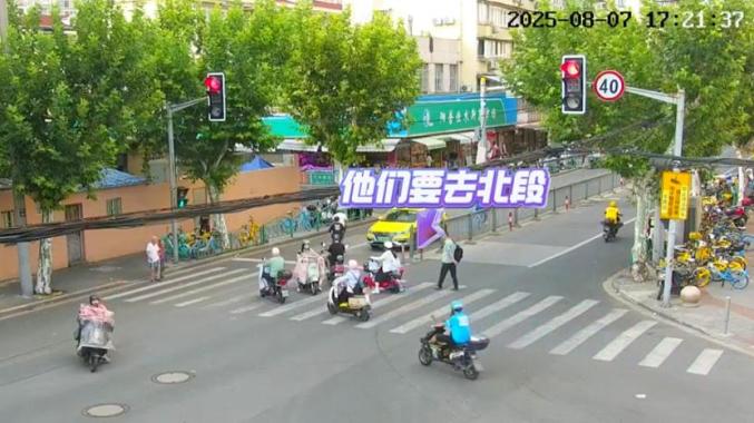 仅25米的错位,使非机动车被迫逆行,交通事故风险大增。杨浦交警关注到这一问题,杨浦交管支队勤务路设大队民警潘珅表示,经现场踏勘和调研,问题主要出在横道线和隔离栏设置上,决定从这两方面优化调整。
