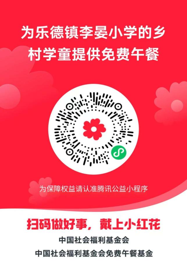 扫描下方二维码进入捐款页面,通过中国社会福利基金会免费午餐基金官方渠道进行捐款。