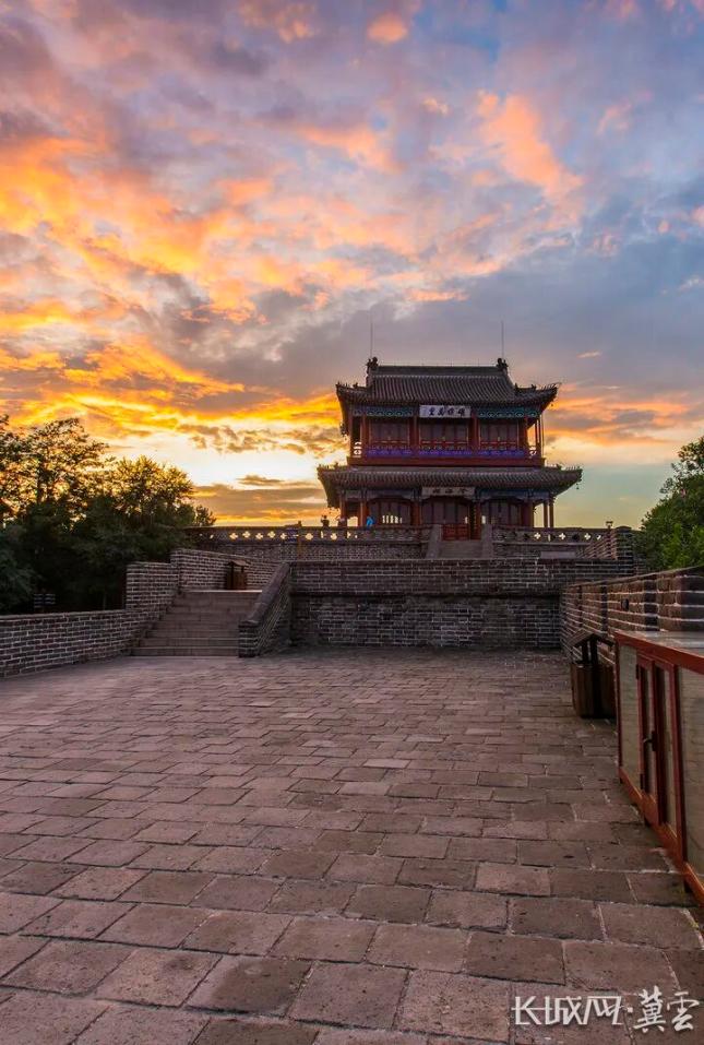 九脊歇山顶,两滴水层楼,雕梁画栋,重檐翼舒,耸立于高昂的龙头之上,这便是历代长城上唯一的临海楼阁——澄海楼。“长城连海水连天,人上飞楼百尺巅”。澄海楼衔领长城,面海背山,向来是观潮看日出的佳处。乾隆皇帝五次登临澄海楼观海赋诗,一楼悬挂的匾额、横额、两侧的楹联皆出自乾隆皇帝御笔。
