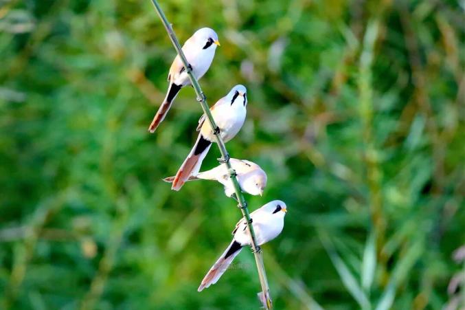 文须雀别称“龙凤鸟”,是我国“三有”保护野生动物。它们栖息在湖泊或河流沿岸的芦苇丛中,常成群在近水的芦苇丛中活动,性情活泼,在芦苇秆上跳跃、攀爬,就像湿地里的“小精灵”。文须雀和震旦鸦雀一样,都是湿地里的“快乐小鸟”,都依赖芦苇生活。如果分不清它们,记住头顶有黑眉纹的是震旦鸦雀,眼睛下有黑胡须的是文须雀。不过,雌性文须雀不长黑色嘴须。