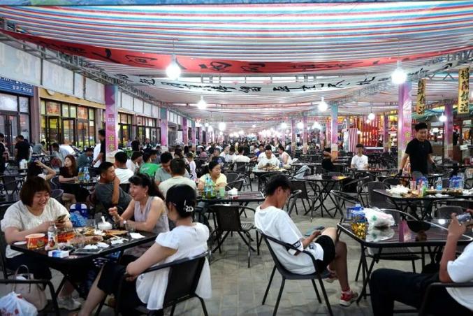 金泽广场和县城街区也十分热闹,烧烤摊、啤酒摊、儿童游玩区都充满了欢声笑语。游客坐在摊位前,大快朵颐,消费热潮持续不断。
