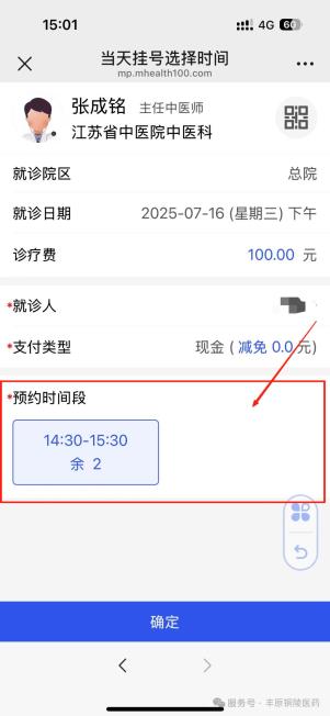 2. 在长三角知名专家工作室目录下,选择挂号专家,选好预约时间段和就诊人,下单支付即可:
