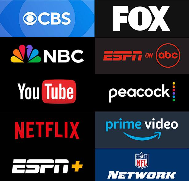 2025赛季,NFL在美国本土有8家主要转播平台,包括NBC、ESPN/ABC、CBS、FOX、亚马逊、Youtube、Netflix和NFL Network,再加上各平台旗下的流媒体服务,数量更多。