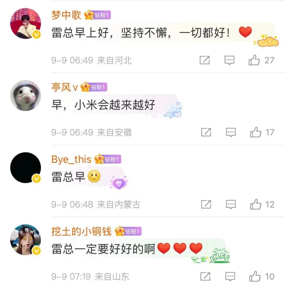 今天一大早,雷军依旧雷打不动地照常健身,评论区全是安慰的话语。