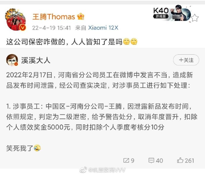 例如2022年王腾泄露新品发布时间,只被罚了5000元,而且这也没影响他后面的职级晋升,算是小小的警告。当时王腾还玩了一波梗。