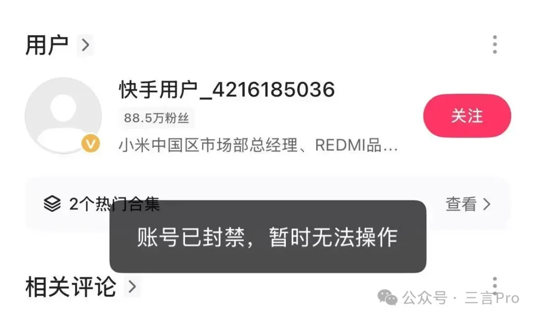 值得注意的是,王腾的快手账号显示已被封禁,这也引发了大家的猜测,为何只有快手被封呢?