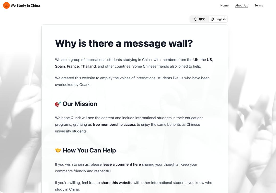 不知道什么时候,留学生的留言墙也上线了,还支持中英双语切换。