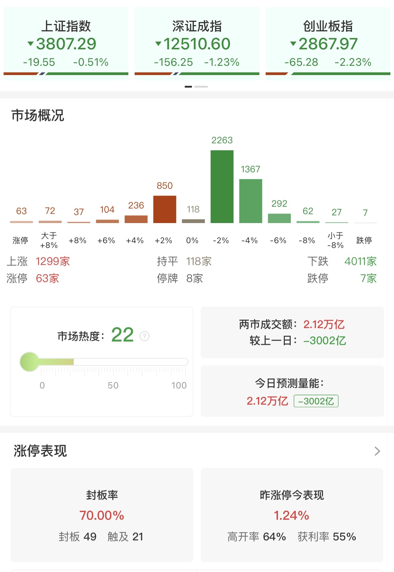 从盘面情况来看,市场热点比较杂乱,个股呈现出跌多涨少的态势,两市超过4000只个股下跌。截至收盘,沪指下跌0.51%,深成指下跌1.23%,创业板指下跌2.23%。