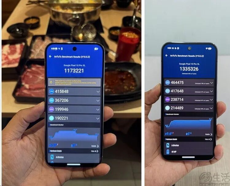 网传Tensor G5安兔兔跑分成绩,左为刚发布时、右为近期系统更新后