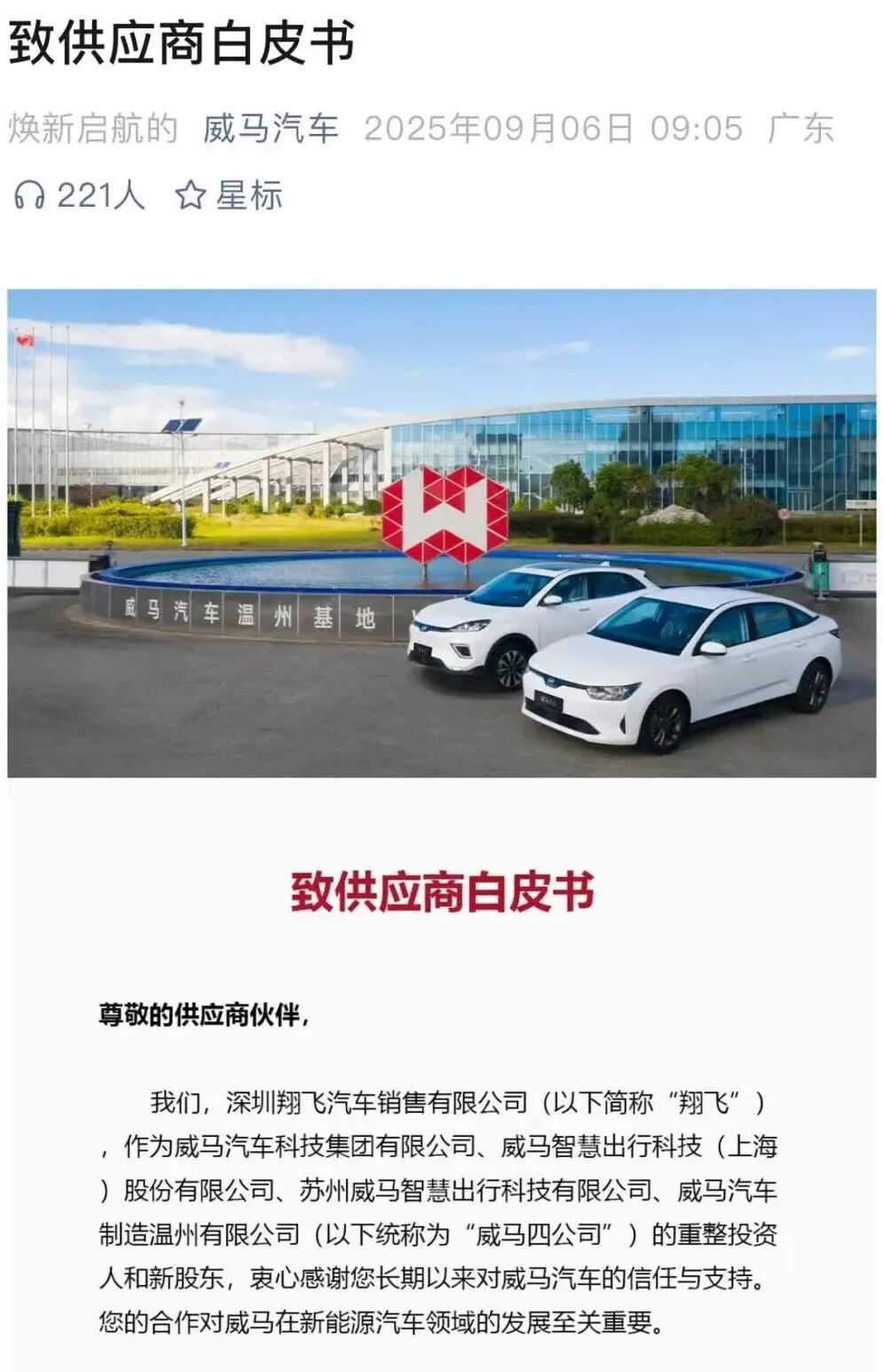 然而,威马当时留下的“烂摊子”,正成为其“重生”路上绕不开的核心问题。公开信息显示,威马陷入危机时,负债规模近250亿元,大量员工薪资被拖欠,不少供应商的货款至今也未能结算。
