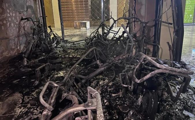 起火点位于小区27号楼一层的公共门厅,多辆电动自行车猛烈燃烧,黑烟迅速向楼上蔓延。所幸楼内居民已及时从地下停车场自行疏散,经消防员紧急处置,明火被扑灭。