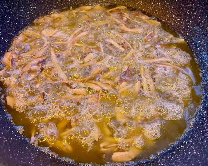 下锅油炸的鸡枞菌。赵婷婷 摄