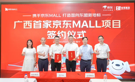 9月9日,京东集团与广西宝塔商业管理有限公司举行了京东MALL签约仪式,广西的首家京东MALL正式确定落户南宁市青秀区埌东商圈。