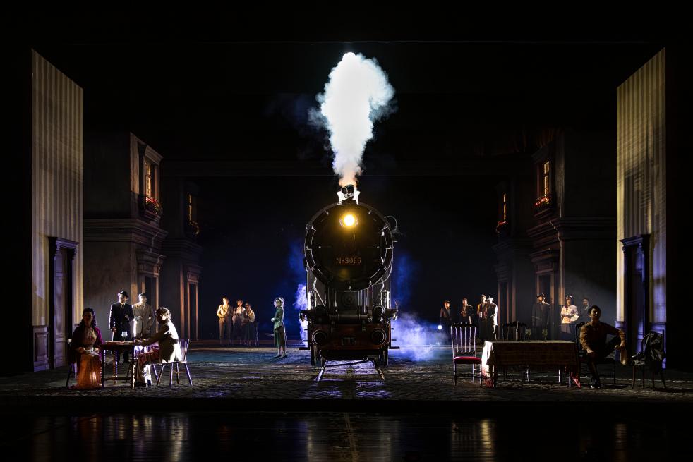 与老版的写实内景不同,这一版演出舞台设计以外景为主,一列老式蒸汽火车随着剧情推进在舞台上行进、旋转。何冰说,火车这一意象,一方面以视觉压迫感象征战争在人们心中投下的深深恐惧,另一方面也蕴含“它也可以带我们去远方”的温暖希望。(记者白瀛)