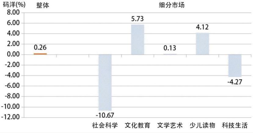 2025年上半年,图书零售市场销售数量同比增长0.02%,销售码洋同比增长0.26%。但第二季度,销售数量同比下降2.83%,销售码洋同比下降3.74%。6月份,销售数量同比下降6.84%,环比增长7.63%;销售码洋同比下降3.66%,环比增长8.56%。