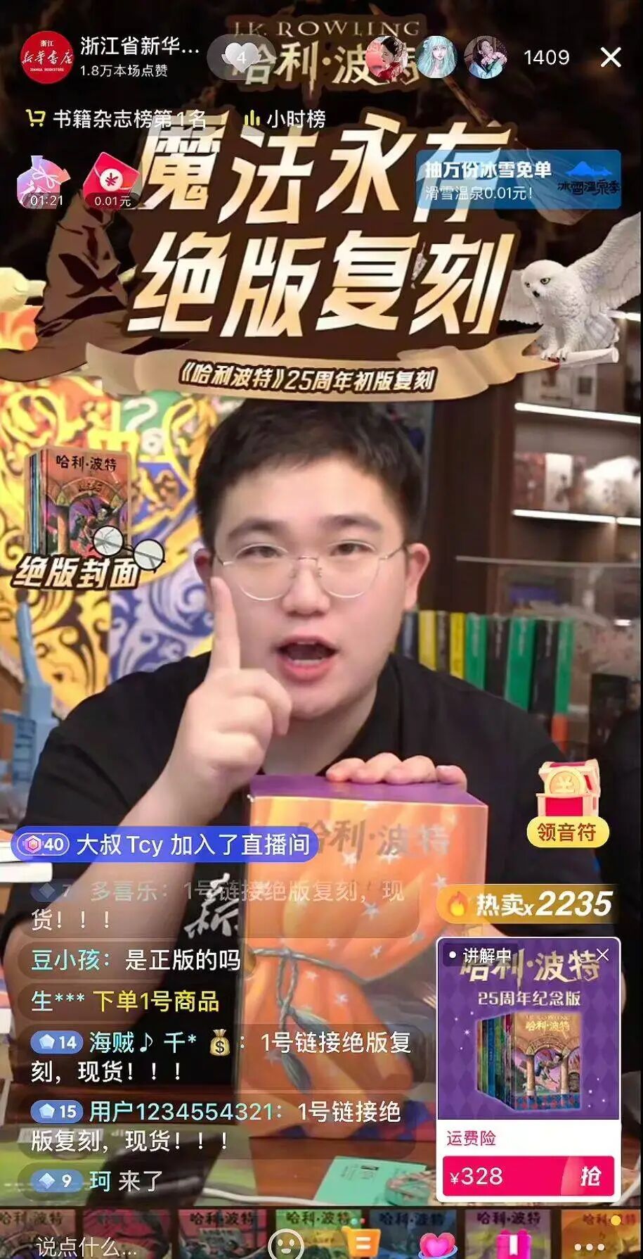 与中华书局的“佛系”风格不同,浙江新华书店的年轻直播团队用“情感共鸣”点燃直播间网友的热情。浙江新华书店6人主播团队在12月份的《哈利波特》专场,单场直播销售额达320万,一句“爱,是世界上最强大的魔法”勾起了众多网友的童年回忆。直播团队还在《宝可梦》专场设置“猜猜我是谁”追忆童年游戏,让图书直播有趣、有料、有温度。